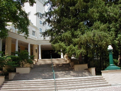![]() Bridge across French Lick Creek | ![]() Tower Pennant flying in the Breeze | ![]() The Lobby Entrance |