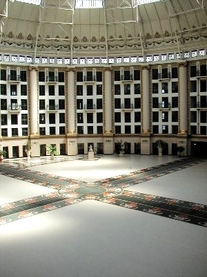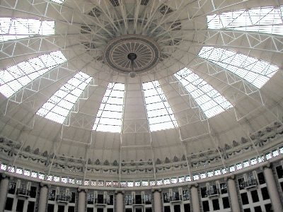 ![]() A Sky Light 200 feet Across | ![]() Sunlight Colors the Atrium | ![]() The Inside of the Dome |