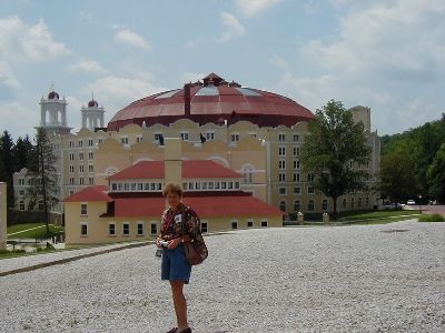 ![]() Mary at the 'back' of the hotel Close up of Mary | ![]() The 'back' of the hotel | ![]() Looking toward town from behind the hotel |