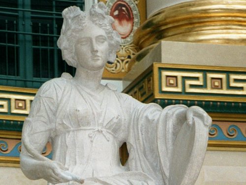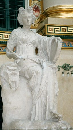 These statues represent the Greek God Apollo, and three of the nine muses.