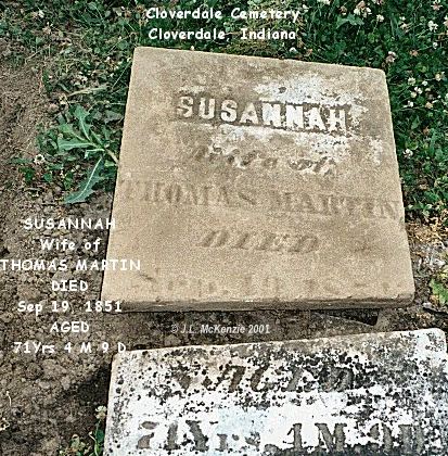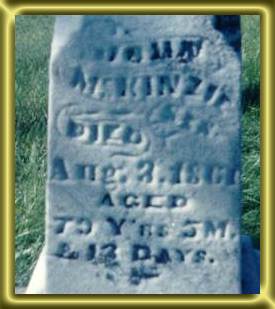 AHNENTAFEL CHART FOR JESSE LEE McKENZIEGENERATION 11 MCKENZIE, Jesse Lee born Apr 4, 1892, Near Stewardson, Prairie TWP, Shelby Co IL; Married (Apr 24, 1917 Effingham, Effingham Co IL) LARIMORE, Mary Edith (photo); died Aug 19, 1961, Shelbyville; Shelby Co IL; buried Beecher City Cemetery; occ. Precision Grinder, Rock Island Arsenal, Rock Island Co IL. Photo of Jesse McKenzie, a sailor, about 1910 Photo of his tombstone. GENERATION 22 MCKENZIE, Lee Wiley born May 3, 1856, Greencastle, Putnam Co IN; Married (Apr 22, 1880 Hamilton Co IN) MCKINZIE, Emma C.; Married 2nd (Aug 2, 1886 Hamilton Co IN) WADE, Edith Jane "Eda"; Married 3rd (Mar 19, 1925 IL) LORTON, Bertha F.; died Jan 19, 1946, Beecher City, Effingham Co IL; buried Beecher City Cemetery; occ. livestock raiser. 3 WADE, Edith Jane "Eda" born Aug 10, 1858, Stewardson, Shelby Co IL; died Apr 11, 1922, Beecher City, Fayette Co IL; buried Beecher City Cemetery. GENERATION 34 MCKINZIE, James born circa 1829, OH; Married (Aug 22, 1850 Putnam Co IN) SINCLAIR, Martha Ann; Married 2nd (May 21, 1863 Shelby Co IL) DRAKE, Mary A.; died bef 28 Aug 1886 in Cedar Co, MO; occ. Farmer. [* Note 1] 5 SINCLAIR, Martha Ann born circa 1834, IN; died circa 1861, Prairie TWP, Shelby Co IL; buried Coons Cemetery; occ. Wife/Mother; Died at age 27 yrs, 7 mos, 2 days.[* Note 2] 6 WADE, James Harvey born Oct, 1825, KY; Married (Sep 14, 1848 Shelby Co IL) HOUCHIN, Malissa M.; died 1910, Big Spring TWP, Shelby Co IL; buried Spain Cemetery; occ. Farmer. 7 HOUCHIN, Malissa M. born Feb, 1825, KY; died 1911, Big Spring TWP, Shelby Co IL; buried Spain Cemetery. GENERATION 48 MCKINZIE, Washington born Nov 23, 1806, Jackson Co OH; Married (before 1828) SPENCER, Susan; died Oct 30, 1873, Adams TWP, Hamilton Co IN; buried Spencer Cemetery, Sheridan, IN, Photo of tombstone; occ. Farmer; Trustee of Adams TWP in 1865. 9 SPENCER, Susan born Oct 31, 1810, Greenbrier Co VA (now WV); died Mar 11, 1896, Adams TWP Hamilton Co IN; buried Spencer Cemetery, Sheridan, IN, Photo of tombstone; Settled in Hamilton Co. 1833. 10 SINCLAIR, Isaac Patterson, Jr. born May 24, 1808, VA; Married (Aug 19, 1826, Greencastle, Putnam Co IN) MARTIN, America Lawson.; died Oct 25, 1854, Greencastle, Putnam Co, IN; buried Cloverdale Cemetery, Cloverdale, IN; occ. Farmer in 1850. The house he built 11 MARTIN, America Lawson born Mar 17, 1807, KY; died Dec 9, 1878, Cloverdale, Putnam Co IN; buried Cloverdale Cemetery, Cloverdale, IN. 12 WADE, Alexander born circa 1797, KY?; Married (before 1825 KY) ???, Paulina living Oct 22, 1850, Wabash TWP, Shelby Co IL; occ. Farmer [Note: Born AL, NC, and GA per son James's Census reports]. [* Note 3] 13 DeJARNETT, Paulina born 1805, KY; living Oct 22, 1850, Wabash TWP, Shelby Co IL. [* Note 4] 14 HOUCHIN, John born circa 1795, KY; Married (before 1823) ???, Frances "Fanny" B.; died Nov 3, 1862, Paradise, Coles Co IL; occ. Farmer. 15 DECKER, Frances "Fanny" B. born Jan 9, 1797, GA?; died Apr 15, 1879, Big Spring, Shelby Co IL; buried Wabash Point Cemetery; [Note: Per Census records, born in NC (1850); Ger (1860); GA (1870)]. [* Note 5] GENERATION 516 MCKINZIE, John born Feb 21, 1782, VA; Married First Wife unknown; last wife (Apr 13, 1817, Gallia Co, OH) REED, Mary; died Aug 3, 1861, Adams TWP, Hamilton Co IN; buried Spencer Cemetery, Sheridan, IN, Photo of tombstone. 17 First Wife Unknown: Last wife: REED/Crane??, John's last wife was Mary born Apr 6, 1786, VA; died Mar 22, 1856, Adams TWP, Hamilton Co IN; buried Spencer Cemetery, Sheridan, IN, Photo of tombstone; occ. Wife/Mother. (Most McKinzie researchers believe that Mary's last name was Reed. Although there are records that show her name was Mary, and although there is a record of a John McKensey who married a Polly Reed - it's possible that this was not John's first wife - or the mother of his oldest children.) 18 SPENCER, Thomas B. born 1762, Greenbrier Co WV (was VA then); Married Oct 6, 1786 PERKINS, Elizabeth; died 1845, Gallipolis, Gallia Co OH; occ. Farmer. 19 PERKINS, Elizabeth born Sep 15, 1773; Married Oct 6, 1786; died 5 Sep 1846, Hamilton Co, IN. 20 SINCLAIR, Isaac S. born Apr 19, 1774, VA; Married (Jul 26, 1796, Bedford Co VA) PATTERSON, Anna (Mrs. Kern); died Mar 17, 1859, Greencastle, Putnam Co IN. His biograhy, published in "Weik's History of Putnam Co, Indiana". 21 PATTERSON, Anna born roughly 1777, VA; Married 1st (Oct 22, 1793 [bond dated Oct 19, 1793], Bedford Co VA) KERN, John; Married 2nd (Jul 26, 1796, Bedford Co VA) SINCLAIR, Isaac S.; died Feb 1, 1865, Cloverdale, Putnam Co IN. 22 MARTIN, Thomas E. born roughly 1779, NC; Married (Aug 28, 1801 Shelby Co KY) GRAVES, Susannah; died circa 1839, Cloverdale TWP, Putnam Co IN; [Note: Thomas Martin came to IN from KY with Isaac Sinclair Sr]. 23 GRAVES, Susannah born May 10, 1780, NC; Married (Aug 28, 1801 Shelby Co KY) MARTIN, Thomas E.; died Sep 19, 1851, Cloverdale TWP, Putnam Co IN; buried Cloverdale Cemetery, Cloverdale, IN, Photo of tombstone. 26 DeJARNETT, John born ca 1777 Halifax Co, Virginia; Married (21 Jul 1800 Henry Co, KY) COONS, Sarah; died 24 Jul 1854, Wabash, Coles Co, IL. 27 COONS, Sarah born 1781 in KY; died 1816 Henry Co, KY. GENERATION 636 SPENCER, Thomas born Bet 1739 and 1750; living 1799, Greenbrier Co, VA. 38 PERKINS (Parkins), James born c 1750; Married (before 1765), BONDURANT, Elizabeth; died after May 1825, Greenbrier Co, VA. 39 BONDURANT, Elizabeth born c 1745; Married (before 1765); died before May 1825, Greenbrier Co, VA. 40 SINCLAIR, Isaac S. born roughly 1744, Prince William Co VA; Married (roughly 1766 VA) DOUGLAS, Letitia; died after 1775, Breckinridge Co, KY. 41 DOUGLAS, Letitia born roughly 1747, Prince William Co VA; died after 1777. 42 PATTERSON, William born 1749, VA; Married (before 1775) MORRIS, Elizabeth; died SC. 43 MORRIS, Elizabeth born roughly 1752, VA; died 1842Spartanburg, Spartanburg Co, SC. 46 GRAVES, David born 1730 to 1735, Louisa Co VA; Married (circa 1753 Surry Co NC) HOLOWAY?, Agnes; died F