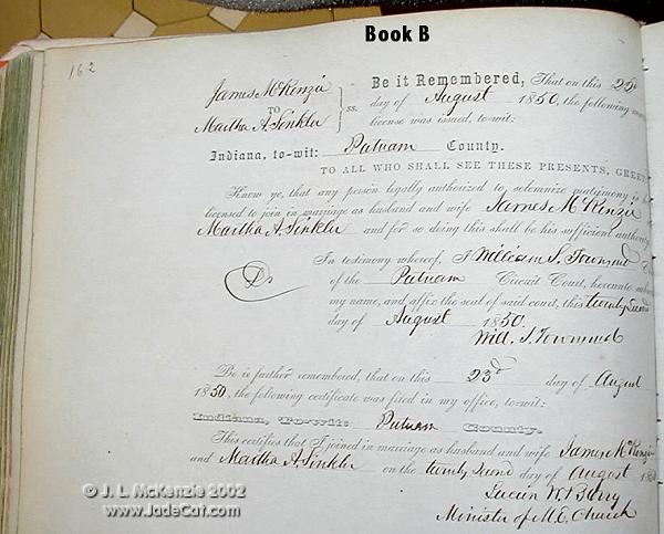 James McKenzie and Martha A. Sinkler Marriage Record