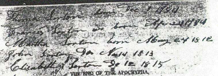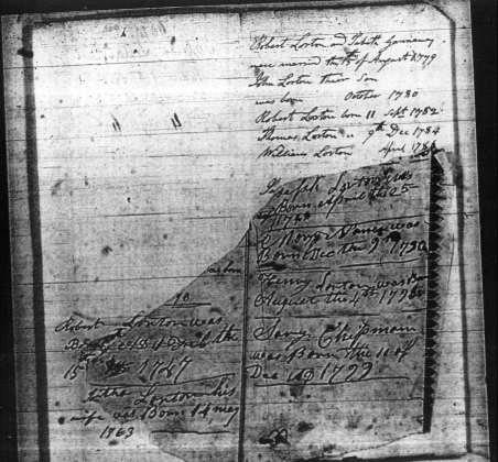 NOTE: The Bible Record above was found in, and copied from, the microfilmed Revolutionary War Pension Record of Robert Lorton of VA located at the National Archives in Washington, D.C.