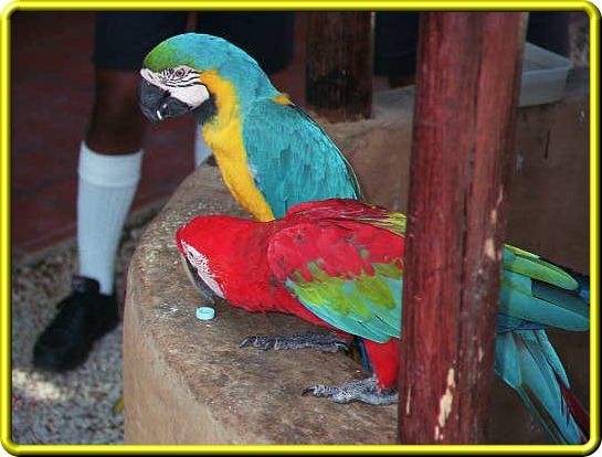 ~ Two Parrots sitting on a well on Isla Margarita ~