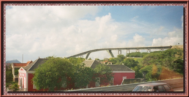 ~ Distant view of the Queen Juliana Bridge in Willemsted, Curaçao ~