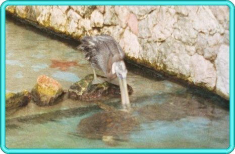 ~ The Turtle and the Pelican ~ The turtle wanted to go to the other side of the pool. The turtle had to pass the pelican to get to the other side of the pool. Every time the turtle came near the pelican, the pelican bit at his head and neck and he retreated.