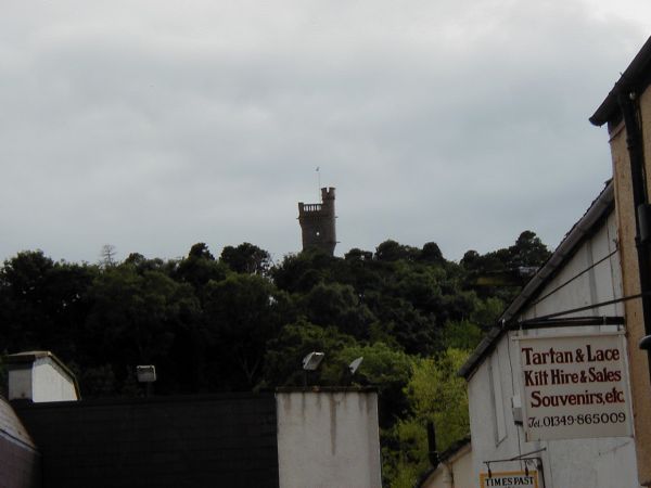 The Monument is the tower above the town. See the Kiltmaker, too.