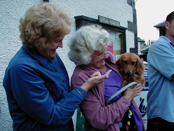 ![]() Later in the evening | ![]() Piping past the Clan Chief | ![]() Two lovely ladies & a puppy |