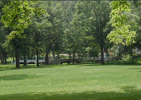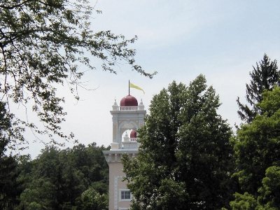 ![]() Bridge across French Lick Creek | ![]() Tower Pennant flying in the Breeze | ![]() The Lobby Entrance |