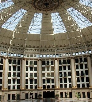 ![]() A Sky Light 200 feet Across | ![]() Sunlight Colors the Atrium | ![]() The Inside of the Dome |