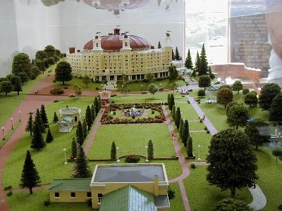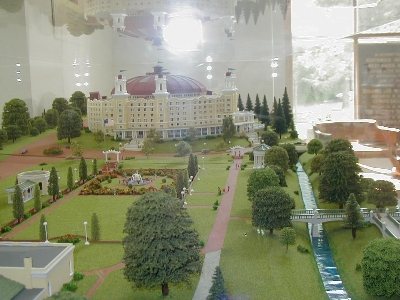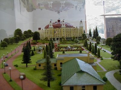 ![]() Model Hotel in a Glass Case Plaque inside Case | ![]() Model Hotel in a Glass Case in the Hotel Museum | ![]() Model with labels |