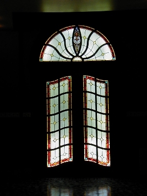 ![]() Red Stained Glass Lobby Door | ![]() Lobby Door and Reflection | ![]() Blue Stained Glass Lobby Door |