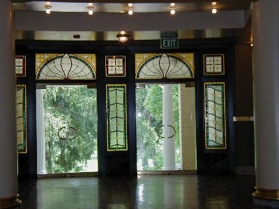 ![]() View of the Lobby Note | ![]() Electric Lights & Stained Glass | ![]() Electric Lights & Beveled Glass |