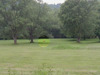 |  Twilight, and a deer on the field north of the hotel