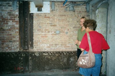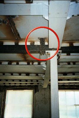 ![]() Mary and Adrianne in an unfinished room on the third floor | ![]() The Unrestored Ballroom above the Dining Room | ![]() Third floor view Closeup |