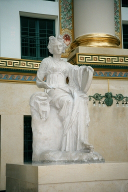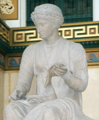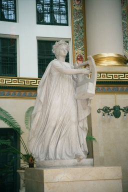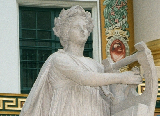 These statues represent the Greek God Apollo, and three of the nine muses.