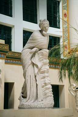 The hotel atrium is graced by four large marble statues.