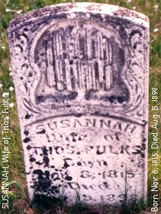 GENERATION 48 LARIMORE, Thomas Logan Douglas born Oct 25, 1808, Stokes Co NC; Married (Oct 10, 1833; Marr Book C. Pg73; Fayette Co IN) HUBBARTT, Mary Flora "Polly"; died Mar 17, 1887, Liberty TWP, Effingham Co IL; buried Beecher City Cemetery; occ. Farmer. Photo of his tombstone 9 HUBBARTT, Mary Flora "Polly" born Jan 31, 1814, Fayette Co IN; died Feb 24, 1897, Liberty TWP, Effingham Co IL; buried Beecher City Cemetery. Photo of tombstone. 10 LORTON, Samuel D. born Jan 17, 1822, "On the White River", AR; Married (Mar 28, 1843, "Old book A" Pg 21, Fayette Co IL) NICHOLS, Lucy A.; died Nov 17, 1890, Liberty TWP, Effingham Co IL; buried Lorton Cemetery; occ. Farmer. Photo of tombstone and vault. Closeup of text. 11 NICHOLS, Lucy A. born Dec 12, 1824, Fayette Co IL; died May 10, 1887, Liberty TWP, Effingham Co IL; buried Lorton Cemetery. Photo of tombstone and vault. Closeup of text. 12 TAYLOR, William born circa 1811, MD; Married (Oct 3, 1836, Knox Co OH) CRAIG, Priscilla; Married 2nd, (Mar 2, 1848 Knox Co OH) HILDRETH, Rebecca McARDLE; died Mar 14, 1886, Loudon TWP, Fayette Co IL; buried Bob Doan Cemetery; occ. Farmer. 13 CRAIG, Priscilla born abt 1813 in Knox Co OH; died bef 2 Mar 1848 in Knox Co OH. 14 FULKS, Thomas F. born Nov 24, 1804, PA; Married (before 1834, PA) AUGHENBAUGH, Susannah; died Jul 24, 1879, Loudon Twp, Fayette Co IL; buried Bob Doan Cemetery; occ. [Note: Moved to Shelby Co IL in 1854]. Photo of his tombstone 15 AUGHENBAUGH, Susannah born Nov 6, 1815, Beaver Co PA; died Aug 15, 1898, Loudon Twp, Fayette Co IL; buried Bob Doan Cemetery. Photo of her tombstone (second view) GENERATION 516 LARIMORE, Thomas Jamison born Nov 28, 1783, Henry Co VA; Married (Jan 20, 1805, Stokes Co NC) WRIGHT, Nancy Agnes; Married 2nd:(May 26, 1831, Rush Co IN) MARSH, Elizabeth; Divorced (Oct, 1836 Rush Co IN) MARSH, Elizabeth; Married 3rd: (Jan 1, 1837, Fayette Co IN) HILL, Mahala [Thompson]; died Sep 22, 1852, Rush Co IN; buried Richland Methodist Church Cemetery; occ. Listed as a miller on 1850 Census. 17 WRIGHT, Nancy Agnes born May 8, 1785, Lancaster Co PA; died Feb 16, 1831, Fayette Co IN; buried Mount Zion Cemetery; [Note: Moved to Fayette Co. IN after marriage; 1840 6 dau, 3sons]. 18 HUBBARTT, Charles born circa 1793, MD; Married (before 1810) HOLLAND, Lilla "Lillie"; Married 2nd: ???, Elizabeth; died Mar 26, 1871, Near Greenup, Cumberland Co IL; buried Greenup Cemetery; occ. County Commissioner of Fayette Co, IN 1828 - 1840. 19 HOLLAND, Lilla "Lillie" born 1788, MD or VA; died May 26, 1851, Cumberland Co IL; buried Greenup Cemetery. 20 LORTON, Henry born Aug 4, 1798, Henry Co VA; Married (circa 1820, Madison? Co IL) CARSON, Sarah; died Oct 11, 1851, Fayette Co IL; buried Lorton Cemetery; occ. Farmer, County Commissioner 4 years. [Note: Veteran of Black Hawk War]. Photo of tombstone. 21 CARSON, Sarah born Jan 6, 1800, TN; died Sep 20, 1866, Fayette Co IL; buried Lorton Cemetery. Photo of tombstone. 22 NICHOLS, Isaiah born Jul 6, 1800, Mason Co KY; Married (Feb 19, 1824, Fayette Co IL) REED, Eliza V.; living 1860, Franklin Co KS; died Dec 1875 Fayette Co IL; buried Welch Cemetery; occ. Farmer. 23 REED, Eliza V. born Aug 3, 1806, Randolph Co IL (IN Terr); living 1860, Franklin Co KS, (no further record found except buried as "Grandmother Nichols, Age Unknown", Welch Cemetery, Fayette Co IL. 26 CRAIG, Jonathan born Nov 23, 1781 Rumney, Grafton Co NH; Married (Dec 17, 1812, Knox Co OH) KYSER, Polly; died May 5, 1850 Mount Vernon, Clinton Twp, Knox Co OH; buried Ebenezer Cemetery. 27 KYSER, Polly born Dec 21, 1792 VA; died Jan 16, 1885, Mount Vernon, Clinton Twp, Knox Co OH; buried Ebenezer Cemetery. 28 FULKS, Charles born est 1780 VA; Married (Nov 18, 1797, Frederick Co VA) FARMER, Jane; died 1835 Wayne Co OH; buried Congress Cemetery. 29 FARMER, Jane born 1773; died 1830. 30* AUGHENBAUGH, Philip (John Philip) born Sep 23, 1792, Westmoreland Co PA; Married (Jun 9, 1812, Beaver Co PA) KINTNER, Christina; died Nov 28, 1876, Boardman, Mahoning Co OH; buried Boardman Cemetery; occ. Farmer. [NOTE: I am still searching for *positive* proof this is Susannah's father. Circumstantial evidence is all I have currently.] 31* KINTNER, Christina born circa 1795, Washington Co PA; died Apr 6, 1877, Boardman, Mahoning Co OH; buried Boardman Cemetery. |