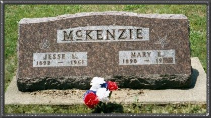 AHNENTAFEL CHART FOR JESSE LEE McKENZIEGENERATION 11 MCKENZIE, Jesse Lee born Apr 4, 1892, Near Stewardson, Prairie TWP, Shelby Co IL; Married (Apr 24, 1917 Effingham, Effingham Co IL) LARIMORE, Mary Edith (photo); died Aug 19, 1961, Shelbyville; Shelby Co IL; buried Beecher City Cemetery; occ. Precision Grinder, Rock Island Arsenal, Rock Island Co IL. Photo of Jesse McKenzie, a sailor, about 1910 Photo of his tombstone. GENERATION 22 MCKENZIE, Lee Wiley born May 3, 1856, Greencastle, Putnam Co IN; Married (Apr 22, 1880 Hamilton Co IN) MCKINZIE, Emma C.; Married 2nd (Aug 2, 1886 Hamilton Co IN) WADE, Edith Jane "Eda"; Married 3rd (Mar 19, 1925 IL) LORTON, Bertha F.; died Jan 19, 1946, Beecher City, Effingham Co IL; buried Beecher City Cemetery; occ. livestock raiser. 3 WADE, Edith Jane "Eda" born Aug 10, 1858, Stewardson, Shelby Co IL; died Apr 11, 1922, Beecher City, Fayette Co IL; buried Beecher City Cemetery. GENERATION 34 MCKINZIE, James born circa 1829, OH; Married (Aug 22, 1850 Putnam Co IN) SINCLAIR, Martha Ann; Married 2nd (May 21, 1863 Shelby Co IL) DRAKE, Mary A.; died bef 28 Aug 1886 in Cedar Co, MO; occ. Farmer. [* Note 1] 5 SINCLAIR, Martha Ann born circa 1834, IN; died circa 1861, Prairie TWP, Shelby Co IL; buried Coons Cemetery; occ. Wife/Mother; Died at age 27 yrs, 7 mos, 2 days.[* Note 2] 6 WADE, James Harvey born Oct, 1825, KY; Married (Sep 14, 1848 Shelby Co IL) HOUCHIN, Malissa M.; died 1910, Big Spring TWP, Shelby Co IL; buried Spain Cemetery; occ. Farmer. 7 HOUCHIN, Malissa M. born Feb, 1825, KY; died 1911, Big Spring TWP, Shelby Co IL; buried Spain Cemetery. GENERATION 48 MCKINZIE, Washington born Nov 23, 1806, Jackson Co OH; Married (before 1828) SPENCER, Susan; died Oct 30, 1873, Adams TWP, Hamilton Co IN; buried Spencer Cemetery, Sheridan, IN, Photo of tombstone; occ. Farmer; Trustee of Adams TWP in 1865. 9 SPENCER, Susan born Oct 31, 1810, Greenbrier Co VA (now WV); died Mar 11, 1896, Adams TWP Hamilton Co IN; buried Spencer Cemetery, Sheridan, IN, Photo of tombstone; Settled in Hamilton Co. 1833. 10 SINCLAIR, Isaac Patterson, Jr. born May 24, 1808, VA; Married (Aug 19, 1826, Greencastle, Putnam Co IN) MARTIN, America Lawson.; died Oct 25, 1854, Greencastle, Putnam Co, IN; buried Cloverdale Cemetery, Cloverdale, IN; occ. Farmer in 1850. The house he built 11 MARTIN, America Lawson born Mar 17, 1807, KY; died Dec 9, 1878, Cloverdale, Putnam Co IN; buried Cloverdale Cemetery, Cloverdale, IN. 12 WADE, Alexander born circa 1797, KY?; Married (before 1825 KY) ???, Paulina living Oct 22, 1850, Wabash TWP, Shelby Co IL; occ. Farmer [Note: Born AL, NC, and GA per son James's Census reports]. [* Note 3] 13 DeJARNETT, Paulina born 1805, KY; living Oct 22, 1850, Wabash TWP, Shelby Co IL. [* Note 4] 14 HOUCHIN, John born circa 1795, KY; Married (before 1823) ???, Frances "Fanny" B.; died Nov 3, 1862, Paradise, Coles Co IL; occ. Farmer. 15 DECKER, Frances "Fanny" B. born Jan 9, 1797, GA?; died Apr 15, 1879, Big Spring, Shelby Co IL; buried Wabash Point Cemetery; [Note: Per Census records, born in NC (1850); Ger (1860); GA (1870)]. [* Note 5] GENERATION 516 MCKINZIE, John born Feb 21, 1782, VA; Married First Wife unknown; last wife (Apr 13, 1817, Gallia Co, OH) REED, Mary; died Aug 3, 1861, Adams TWP, Hamilton Co IN; buried Spencer Cemetery, Sheridan, IN, Photo of tombstone. 17 First Wife Unknown: Last wife: REED/Crane??, John's last wife was Mary born Apr 6, 1786, VA; died Mar 22, 1856, Adams TWP, Hamilton Co IN; buried Spencer Cemetery, Sheridan, IN, Photo of tombstone; occ. Wife/Mother. (Most McKinzie researchers believe that Mary's last name was Reed. Although there are records that show her name was Mary, and although there is a record of a John McKensey who married a Polly Reed - it's possible that this was not John's first wife - or the mother of his oldest children.) 18 SPENCER, Thomas B. born 1762, Greenbrier Co WV (was VA then); Married Oct 6, 1786 PERKINS, Elizabeth; died 1845, Gallipolis, Gallia Co OH; occ. Farmer. 19 PERKINS, Elizabeth born Sep 15, 1773; Married Oct 6, 1786; died 5 Sep 1846, Hamilton Co, IN. 20 SINCLAIR, Isaac S. born Apr 19, 1774, VA; Married (Jul 26, 1796, Bedford Co VA) PATTERSON, Anna (Mrs. Kern); died Mar 17, 1859, Greencastle, Putnam Co IN. His biograhy, published in "Weik's History of Putnam Co, Indiana". 21 PATTERSON, Anna born roughly 1777, VA; Married 1st (Oct 22, 1793 [bond dated Oct 19, 1793], Bedford Co VA) KERN, John; Married 2nd (Jul 26, 1796, Bedford Co VA) SINCLAIR, Isaac S.; died Feb 1, 1865, Cloverdale, Putnam Co IN. 22 MARTIN, Thomas E. born roughly 1779, NC; Married (Aug 28, 1801 Shelby Co KY) GRAVES, Susannah; died circa 1839, Cloverdale TWP, Putnam Co IN; [Note: Thomas Martin came to IN from KY with Isaac Sinclair Sr]. 23 GRAVES, Susannah born May 10, 1780, NC; Married (Aug 28, 1801 Shelby Co KY) MARTIN, Thomas E.; died Sep 19, 1851, Cloverdale TWP, Putnam Co IN; buried Cloverdale Cemetery, Cloverdale, IN, Photo of tombstone. 26 DeJARNETT, John born ca 1777 Halifax Co, Virginia; Married (21 Jul 1800 Henry Co, KY) COONS, Sarah; died 24 Jul 1854, Wabash, Coles Co, IL. 27 COONS, Sarah born 1781 in KY; died 1816 Henry Co, KY. GENERATION 636 SPENCER, Thomas born Bet 1739 and 1750; living 1799, Greenbrier Co, VA. 38 PERKINS (Parkins), James born c 1750; Married (before 1765), BONDURANT, Elizabeth; died after May 1825, Greenbrier Co, VA. 39 BONDURANT, Elizabeth born c 1745; Married (before 1765); died before May 1825, Greenbrier Co, VA. 40 SINCLAIR, Isaac S. born roughly 1744, Prince William Co VA; Married (roughly 1766 VA) DOUGLAS, Letitia; died after 1775, Breckinridge Co, KY. 41 DOUGLAS, Letitia born roughly 1747, Prince William Co VA; died after 1777. 42 PATTERSON, William born 1749, VA; Married (before 1775) MORRIS, Elizabeth; died SC. 43 MORRIS, Elizabeth born roughly 1752, VA; died 1842Spartanburg, Spartanburg Co, SC. 46 GRAVES, David born 1730 to 1735, Louisa Co VA; Married (circa 1753 Surry Co NC) HOLOWAY?, Agnes; died F