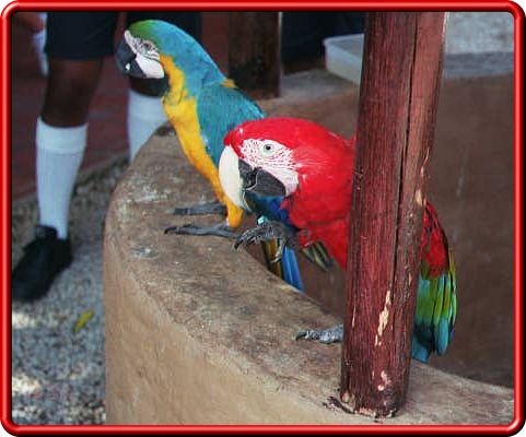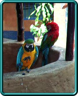 ~ Two Parrots sitting on a well on Isla Margarita ~
