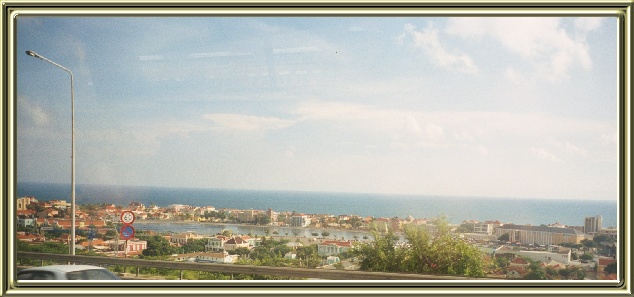 ~ View of the ship and Willemsted in Curaçao from the Queen Juliana Bridge ~