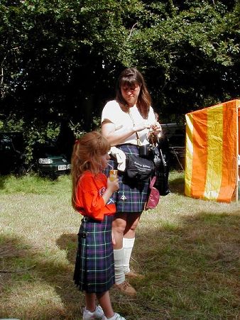 ![]() Later in the evening | ![]() Piping past the Clan Chief | ![]() Two lovely ladies & a puppy |