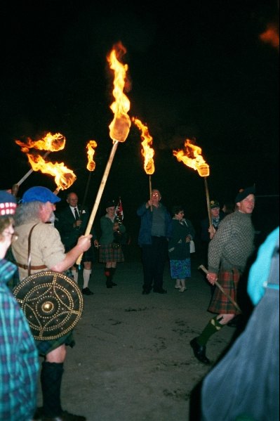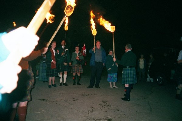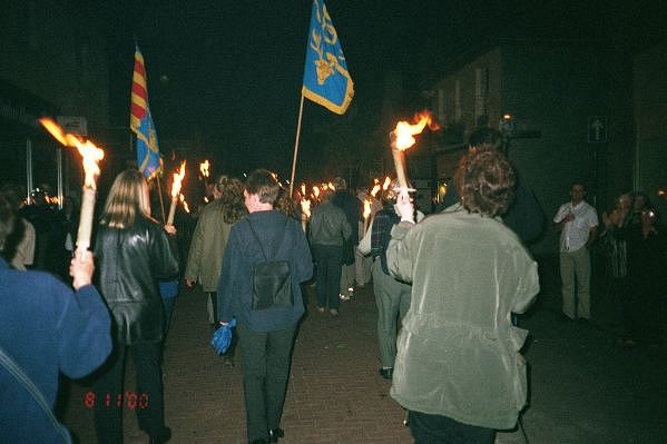 ![]() Assembly for torch light parade. | ![]() Waiting for their torches. | ![]() Here we go. |