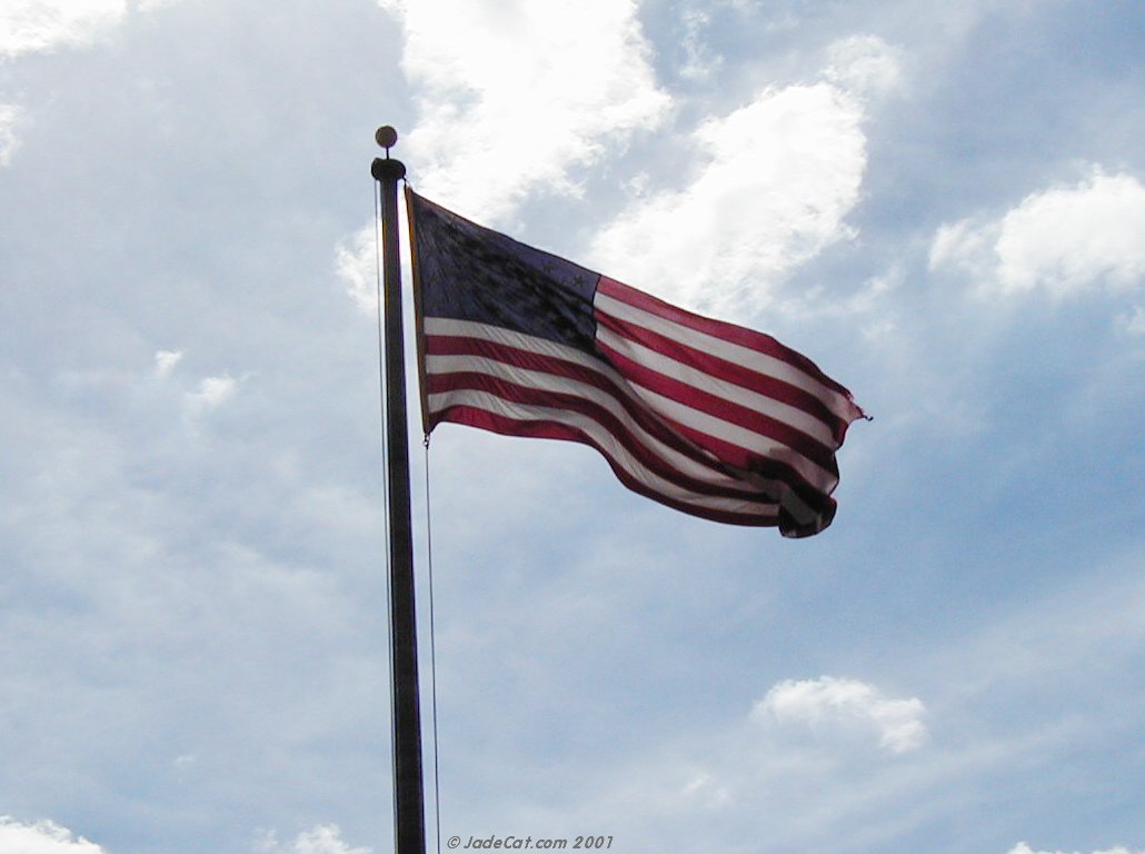 The top image is a photo I took in February 2004. This is "Bear". A seven week old kitten who was born all white and was therefore christened "Polar Bear". He's playing with the fuzzy ball at his feet, and I took about 12 shots to get one of him standing up like this. He kept doing it, but was so fast that it was hard to catch. I hope you think he's as cute as I do. The bottom two photos are offered as a tribute to the victims of the attack on the USA on September 11, 2001. |